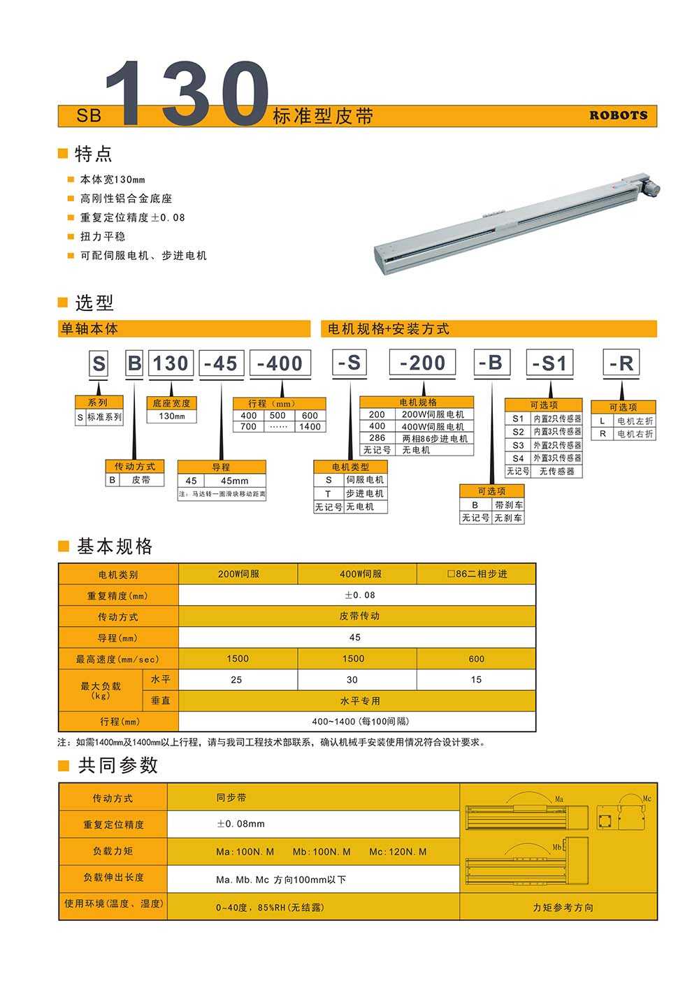 所屬型號:SB130 所屬品牌:福士工業(yè) 所屬分類:單軸模組_標準型 應(yīng)用領(lǐng)域:紡織行業(yè) 電梯行業(yè) 機床行業(yè)