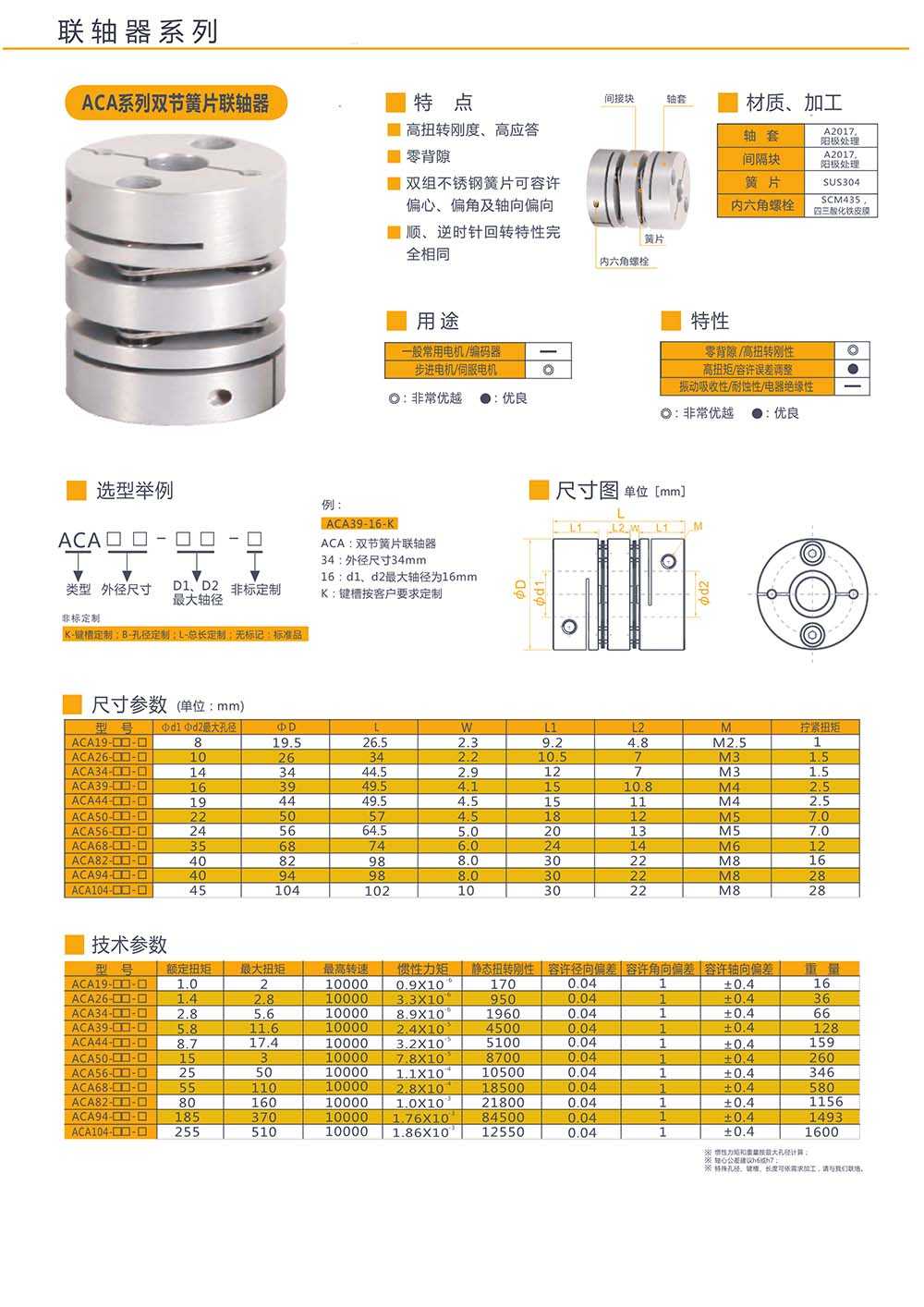 所屬型號:ACA系列 所屬品牌:艾而特 所屬分類:聯軸器 應用領域:紡織行業 電梯行業 機床行業