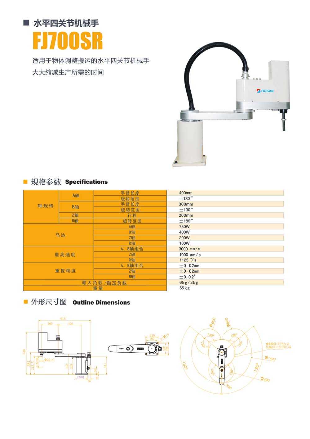所屬型號:FJ700SR 所屬品牌:福士工業(yè) 所屬分類:四關(guān)節(jié)機(jī)械手 應(yīng)用領(lǐng)域:紡織行業(yè) 電梯行業(yè) 機(jī)床行業(yè)