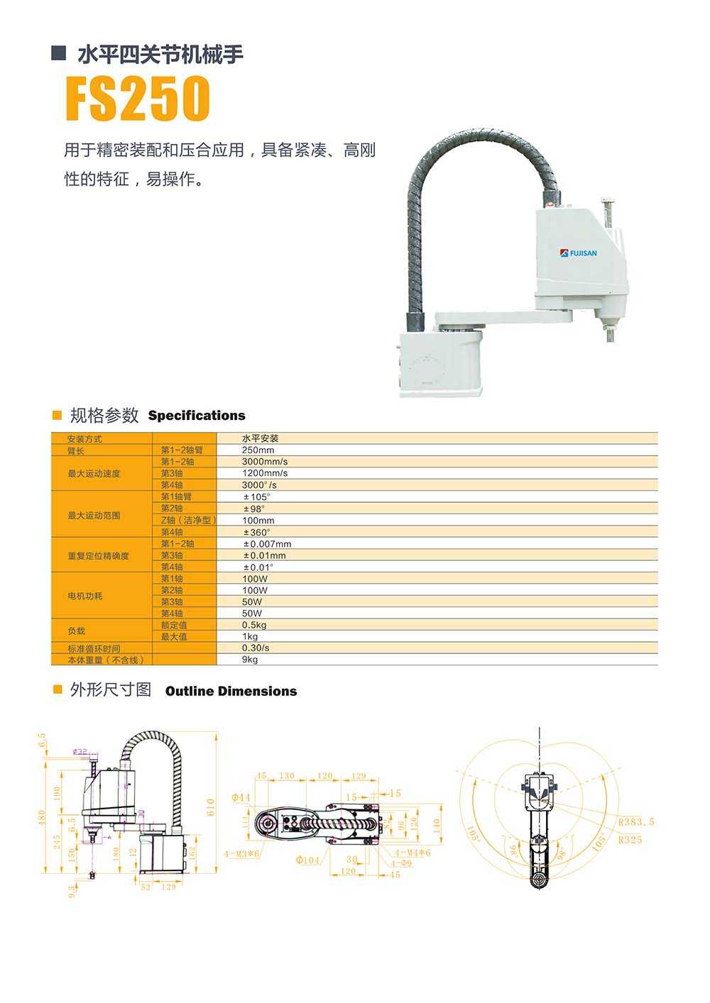 所屬型號:FS250 所屬品牌:福士工業 所屬分類:四關節機械手 應用領域:紡織行業 電梯行業 機床行業