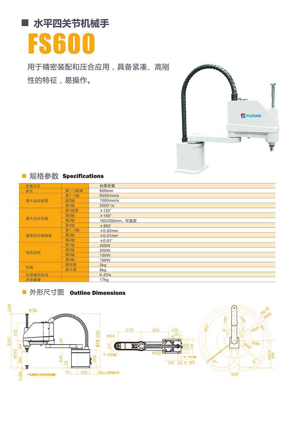 所屬型號:FS600 所屬品牌:福士工業 所屬分類:四關節機械手 應用領域:紡織行業 電梯行業 機床行業