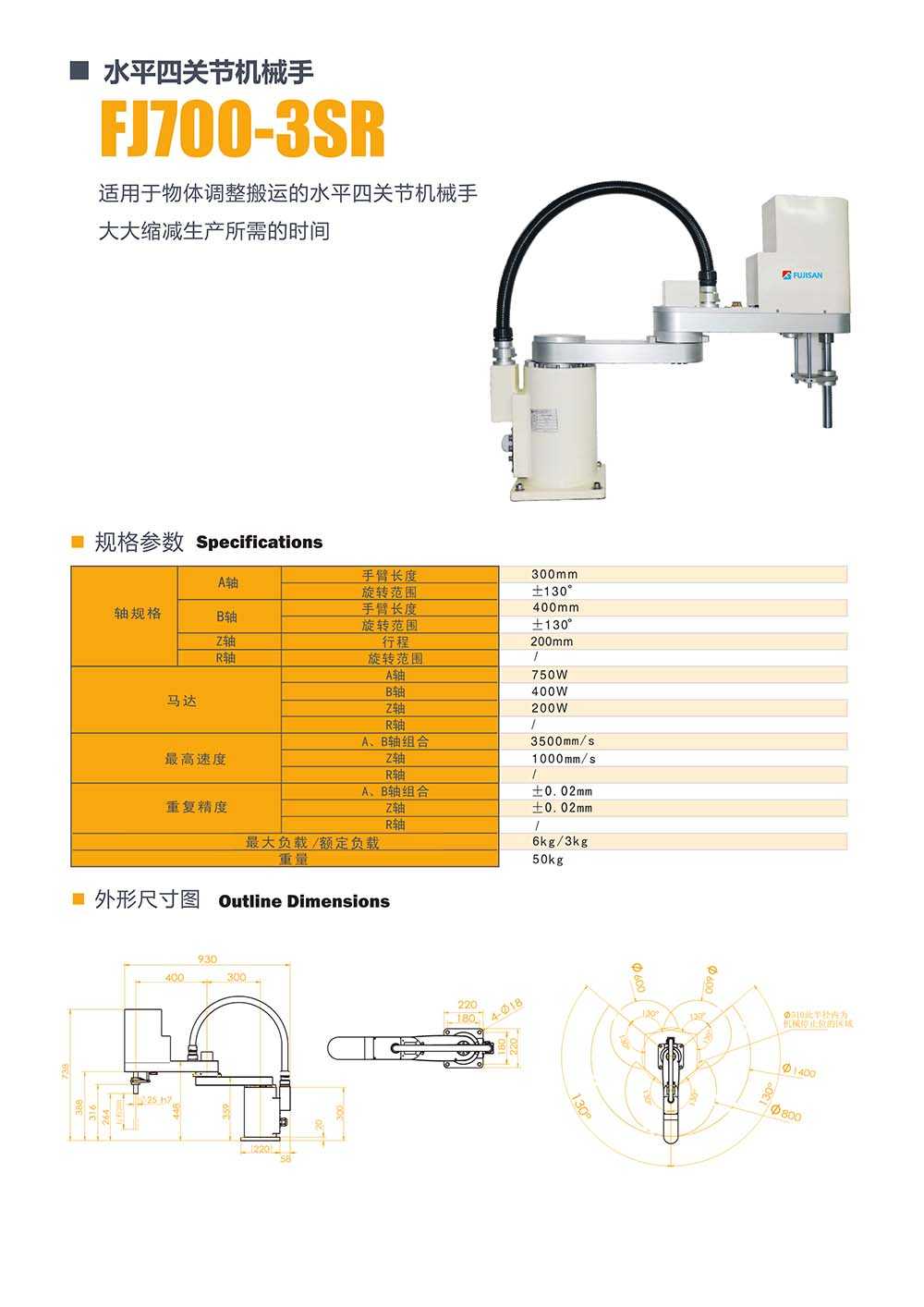 所屬型號(hào):FJ700-3SR 所屬品牌:福士工業(yè) 所屬分類:四關(guān)節(jié)機(jī)械手 應(yīng)用領(lǐng)域:紡織行業(yè) 電梯行業(yè) 機(jī)床行業(yè)