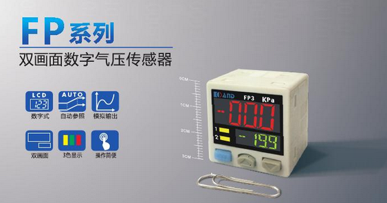 艾而特自主研發的FP系列數字氣壓表可以讓當前值和基準值同時顯示,而基準值可以直接設定,三種顏色的顯示(紅,綠,橙),可以更容易地掌握當下傳感器的狀況。并擁有日常操作設定“RUN模式”,基本操作“菜單設定模式”,高級功能的“PRO模式”三種模式可以精確地測量介質壓力。并且也具有遠程操控,自動參照的智能化功能,可以讓操作最簡化。